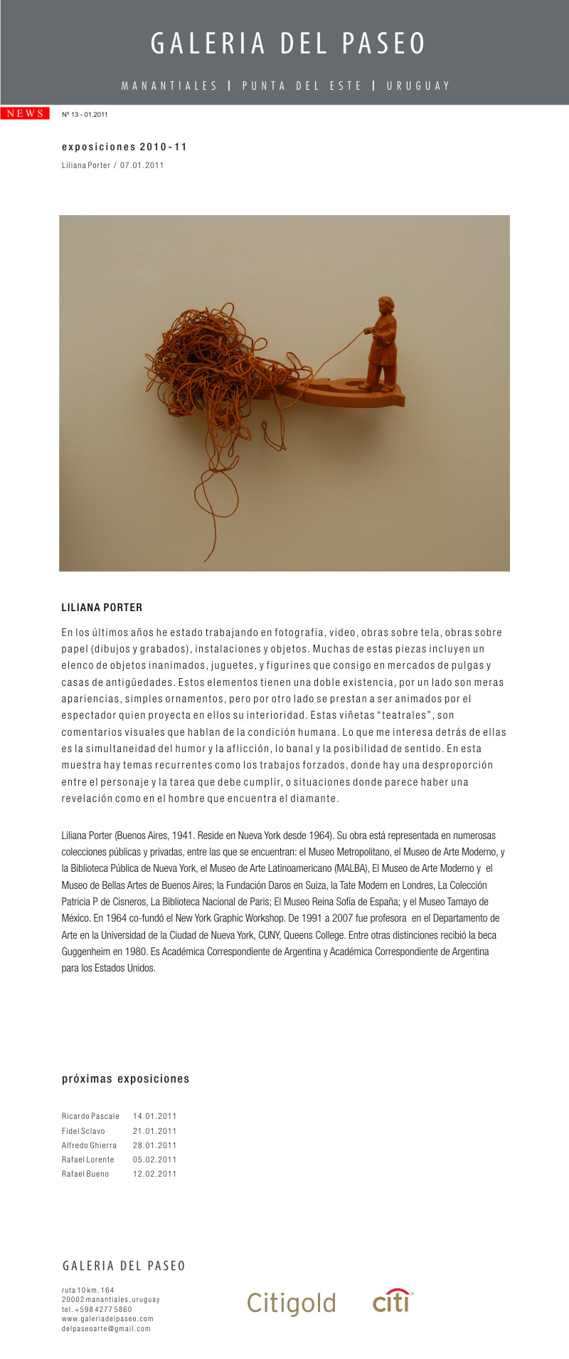 [Galeriadelpaseo] Inauguración Liliana Porter - Galería del Paseo - Viernes 7 de enero, 20.30 horas